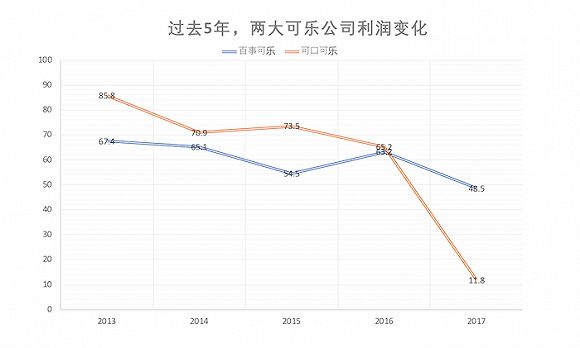 比起有乐事等食品品牌撑着的百事公司,可口可乐的业绩真的是断崖式下跌。