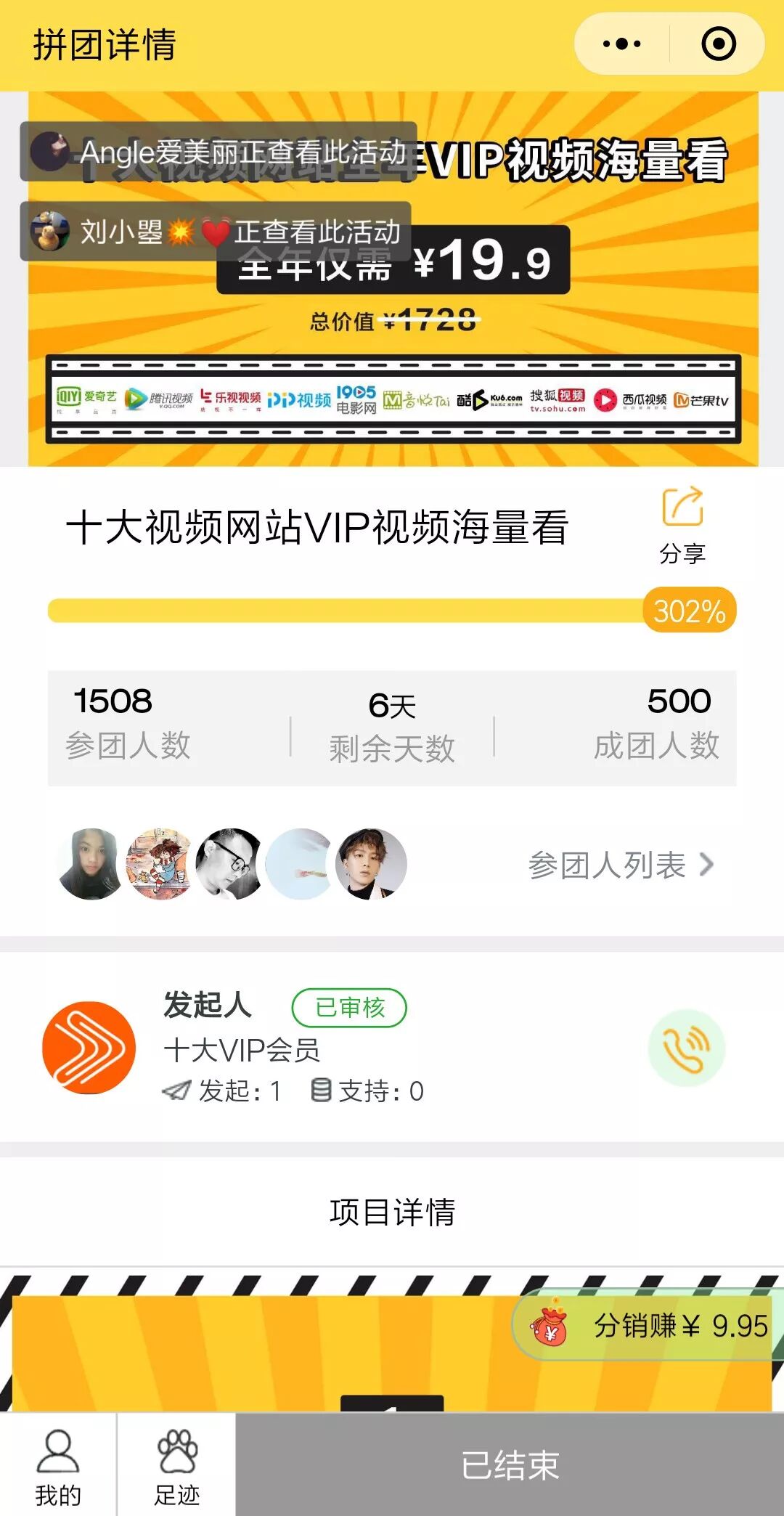 6. 即使到了截止时间,人数仍未满,系统可以模拟买家凑满人数,使之成团。