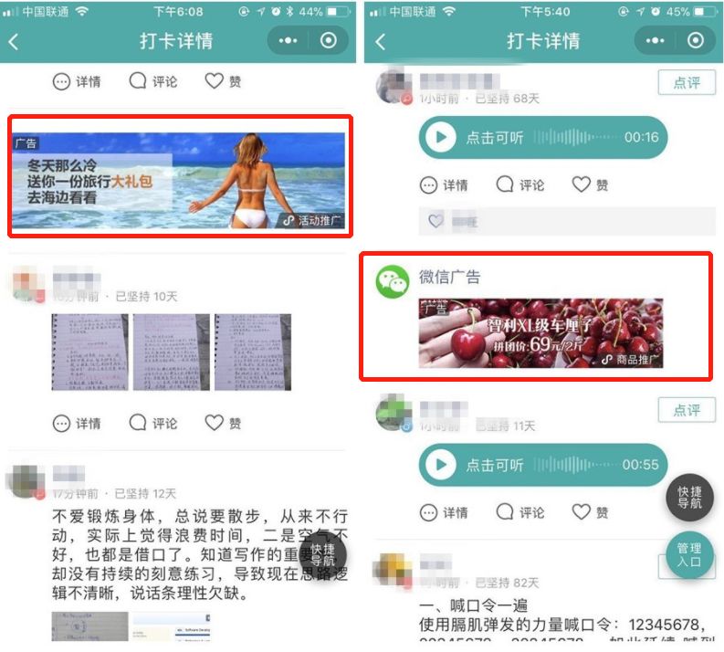 左图为官方广告样式,右图为“小打卡”优化后的广告样式
