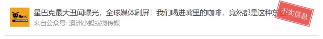 3月31日下午,公众号“澳洲Mirror”推送了一篇名为《星巴克最大丑闻曝光,全球媒体刷屏!我们喝进嘴里的咖啡,竟然都是这种东西…》的文章,单看标题就足够耸人听闻,来势汹汹。