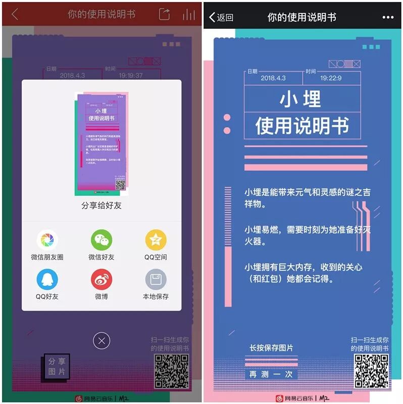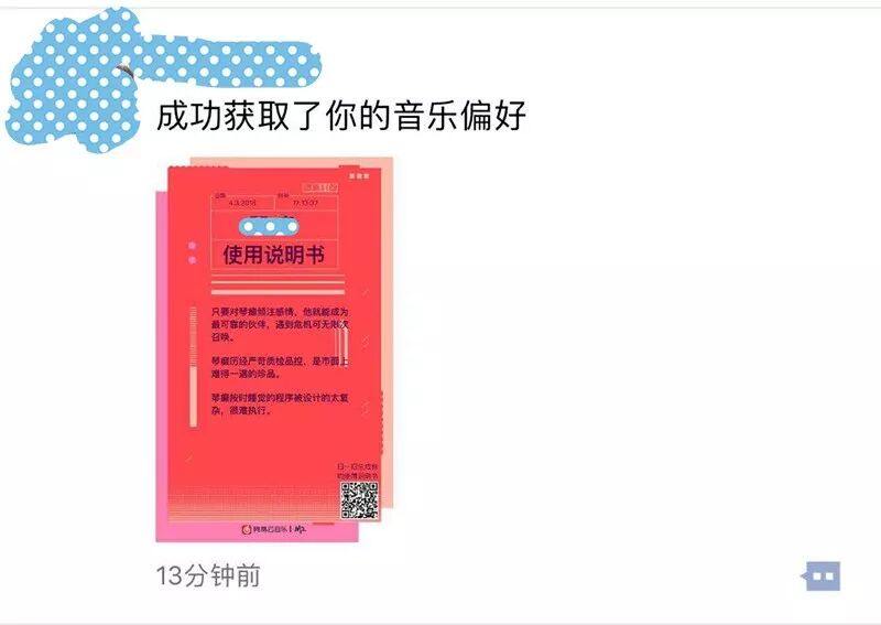 网易云音乐《使用说明书》h5就抓住这层社交诉求,并配合给出合(撒)情(娇)合(卖)理(萌)的理由,实际上是制造了一种“社交货币”,很容易使受众成为“自来水”主动为其转发。