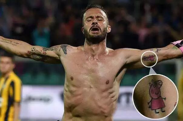不要以为只有社会人才爱小猪佩奇,意大利2006年世界杯的冠军成员钢铁猛男吉拉迪诺也是对小猪佩奇爱的深沉。