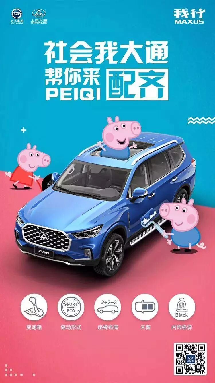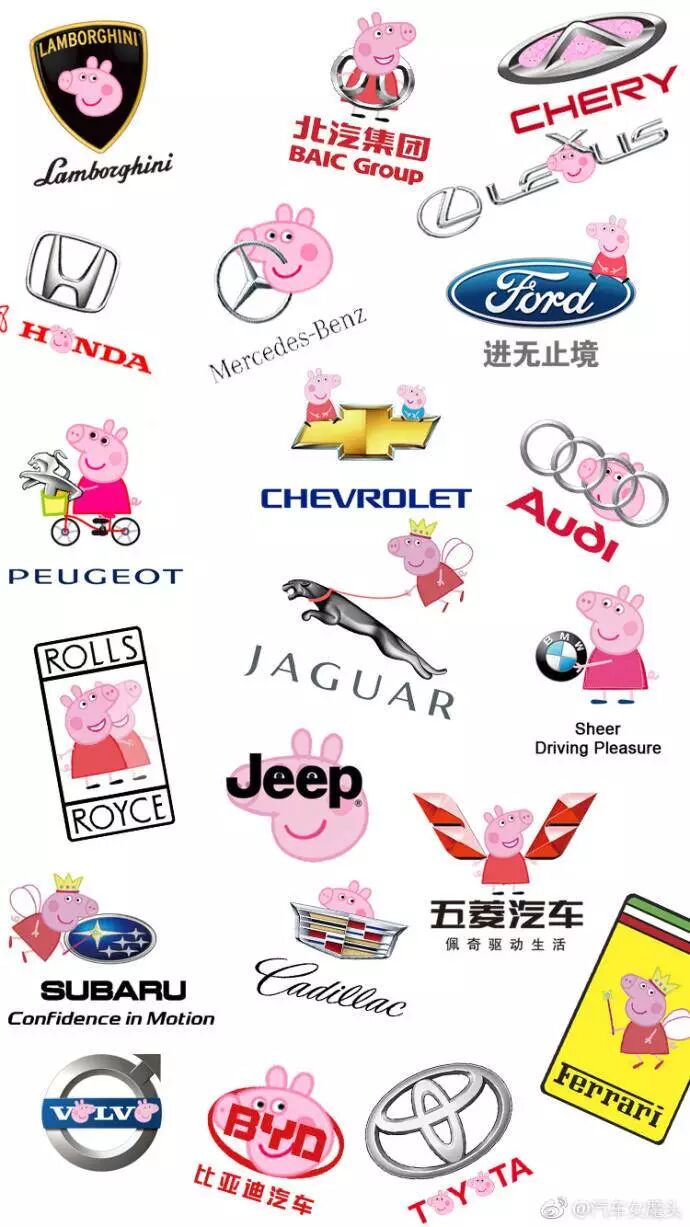 小编也被脑洞大开的设计师征服了,没想到,这一下带起了众多设计师一起开脑洞,更多品牌加入了和小猪佩奇的狂欢中,而其中汽车界最为积极: