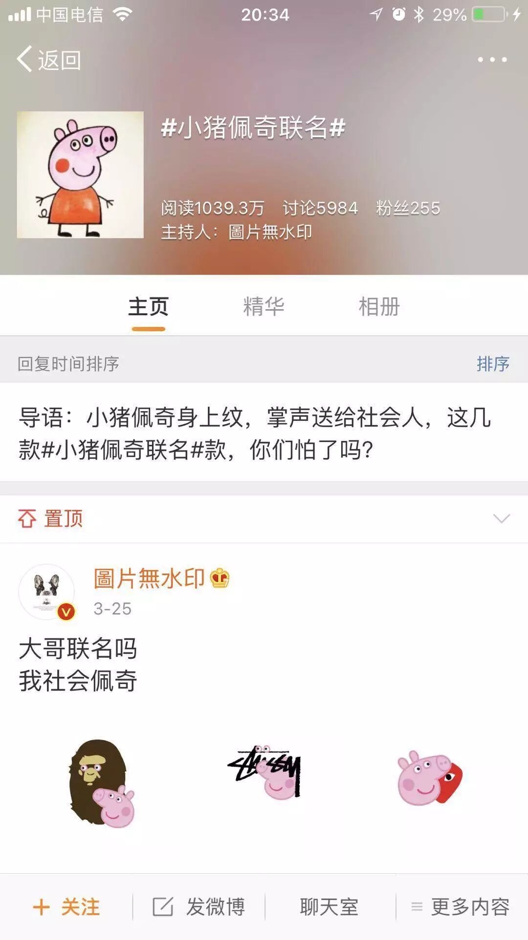 我们先看看微博,近期比较热的话题#小猪佩奇#、#小猪佩奇联名#、#小猪佩奇社会人#有几百万到过亿不等的阅读量: