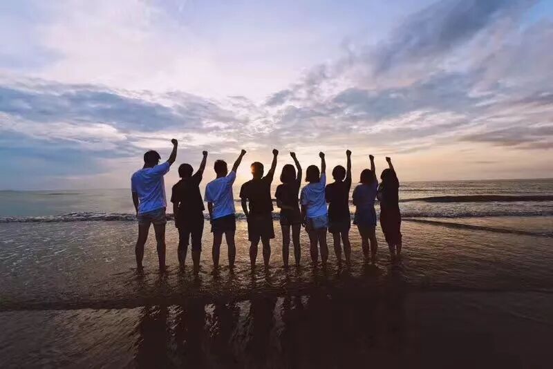 临推送这篇文章的时候,简七和她的小伙伴们正在沙巴旅行,朋友圈留下感动的瞬间,日暮下的海滩宁静而美好,他们面朝海浪,一起高高举起右臂……