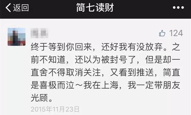 2016年即将来临的时候,她毅然辞去工作,再次回归内容创业。在公号上以一篇《简七:梦想重新起航,敬请期待...》宣告归来,这篇推送也成为“简七读财”上点赞最高的文章。