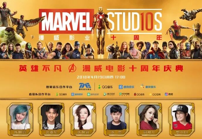 今天下午17点“漫威电影十周年庆典”上,由电影主创们开场说了几句话后,便开始介绍出席活动的国内歌手明星们。