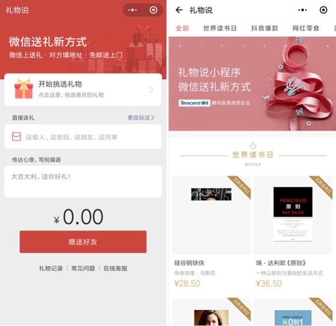他们试过新零售,和校社团深度合作,做直营礼物店;试过企业服务,为企业客户提供礼物定制和团购服务。最后,礼物说想到了小程序。