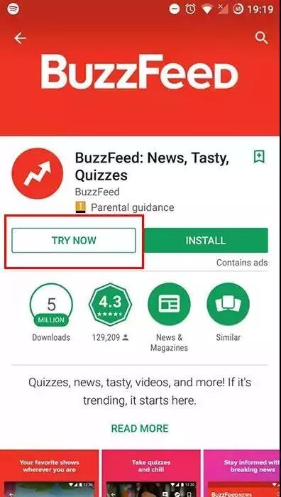 Buzzfeed 的 Instant App页面