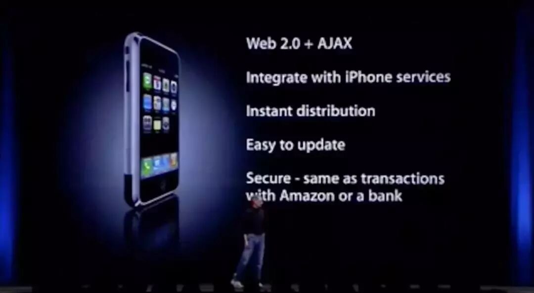 早在11年前,苹果前CEO史蒂夫·乔布斯就在2007年WWDC上演示了将Web App作为初代iPhone开发应用的方式。而在那个时候,App Store都还没有诞生。