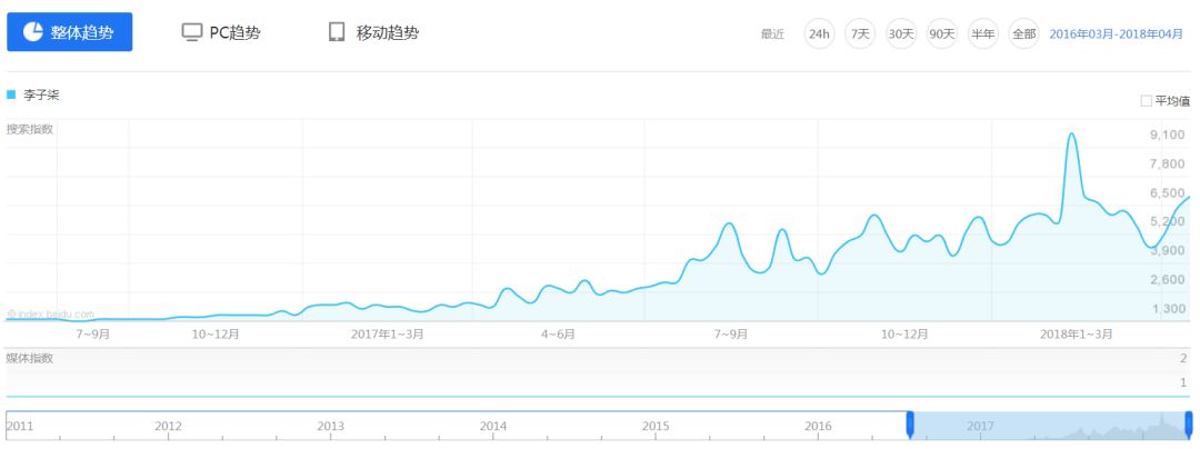 辛苦归辛苦。《兰州牛肉面》之后,李子柒在美拍上的单支视频播放量,都稳定在500万以上。百度指数显示,这期节目发出的2016年11月,也恰好是李子柒开始广为人知的时间。