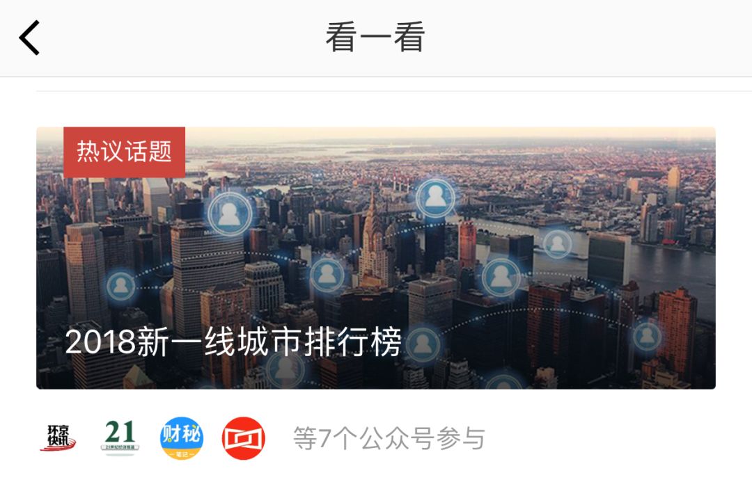 什么是“热议话题”?据微信官方介绍,这是通过热点事件将符合条件的文章进行聚合的阅读产品,主界面如下图所示:
