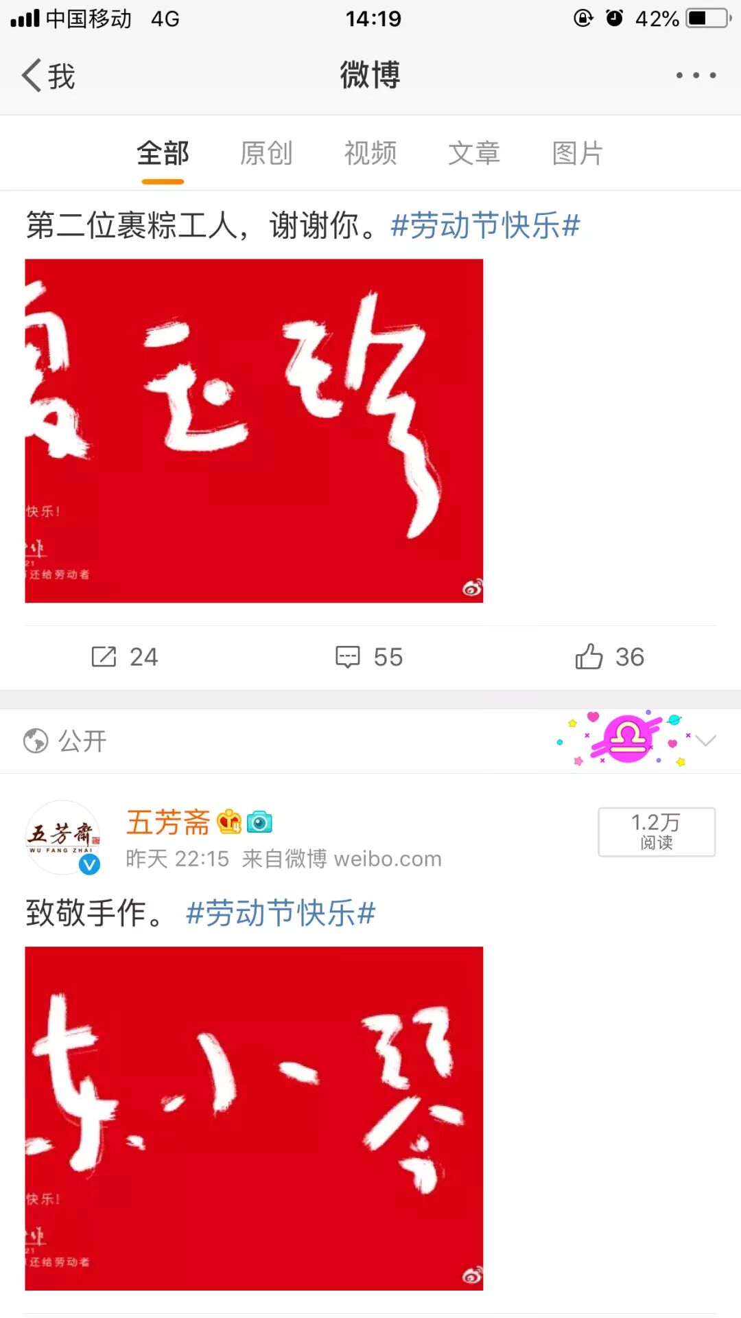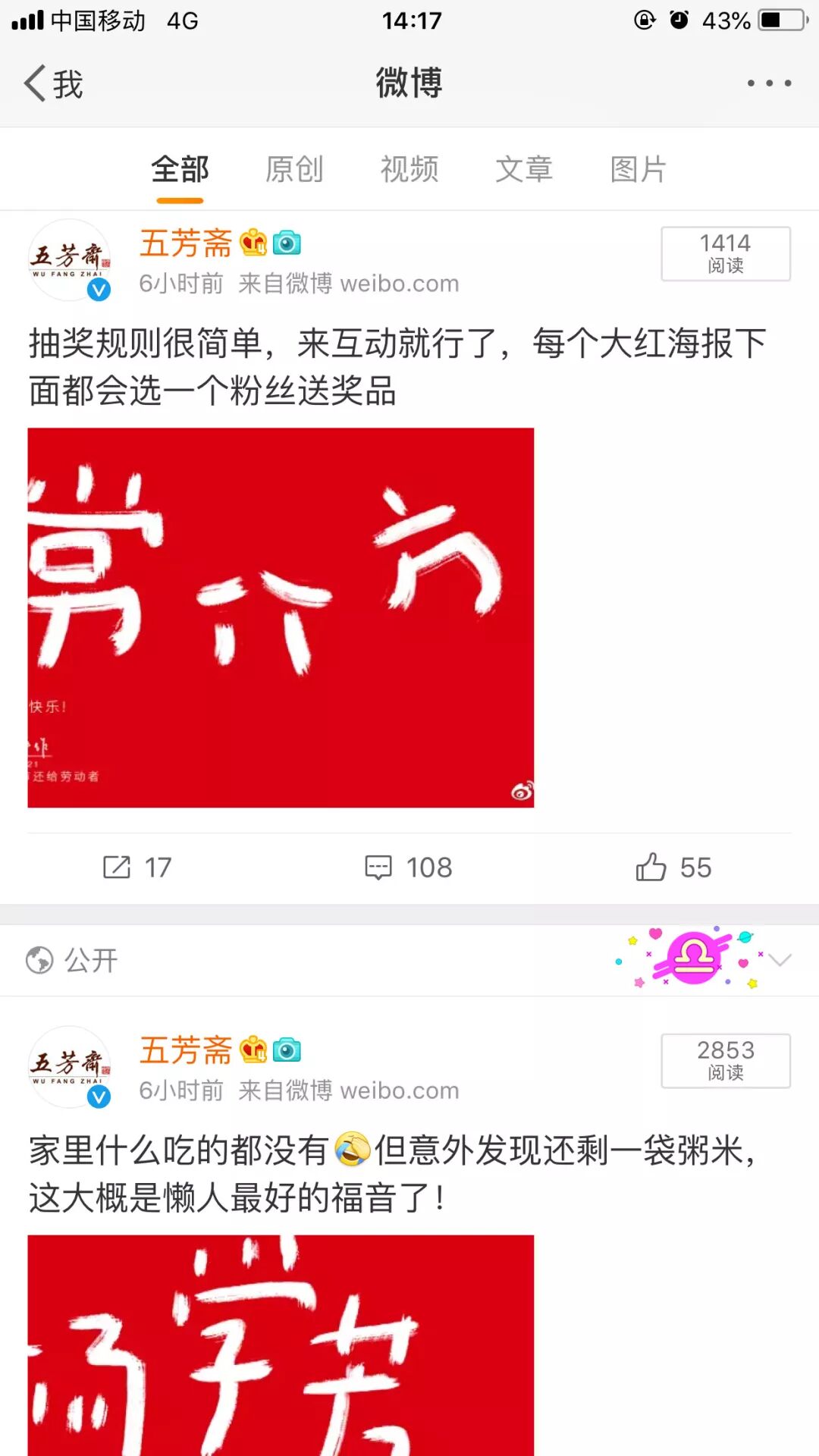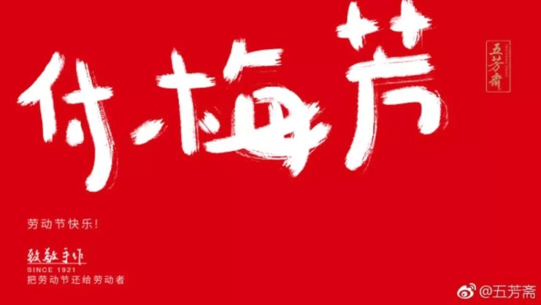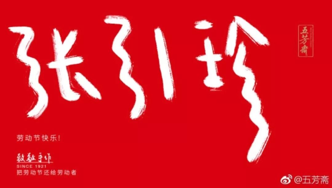 但五芳斋要走品牌年轻化的心是坚定的。就是昨天,劳动节,五芳斋做了一套很奇葩的劳动节海报。海报内容无比简单粗暴,所有的海报上只有一个个接地气的名字,比如“王为民”、“夏玉珍”,然后五芳斋更以在自家微博爆博的形式发了出来,我想无论是谁看到都是一张黑人问号脸?