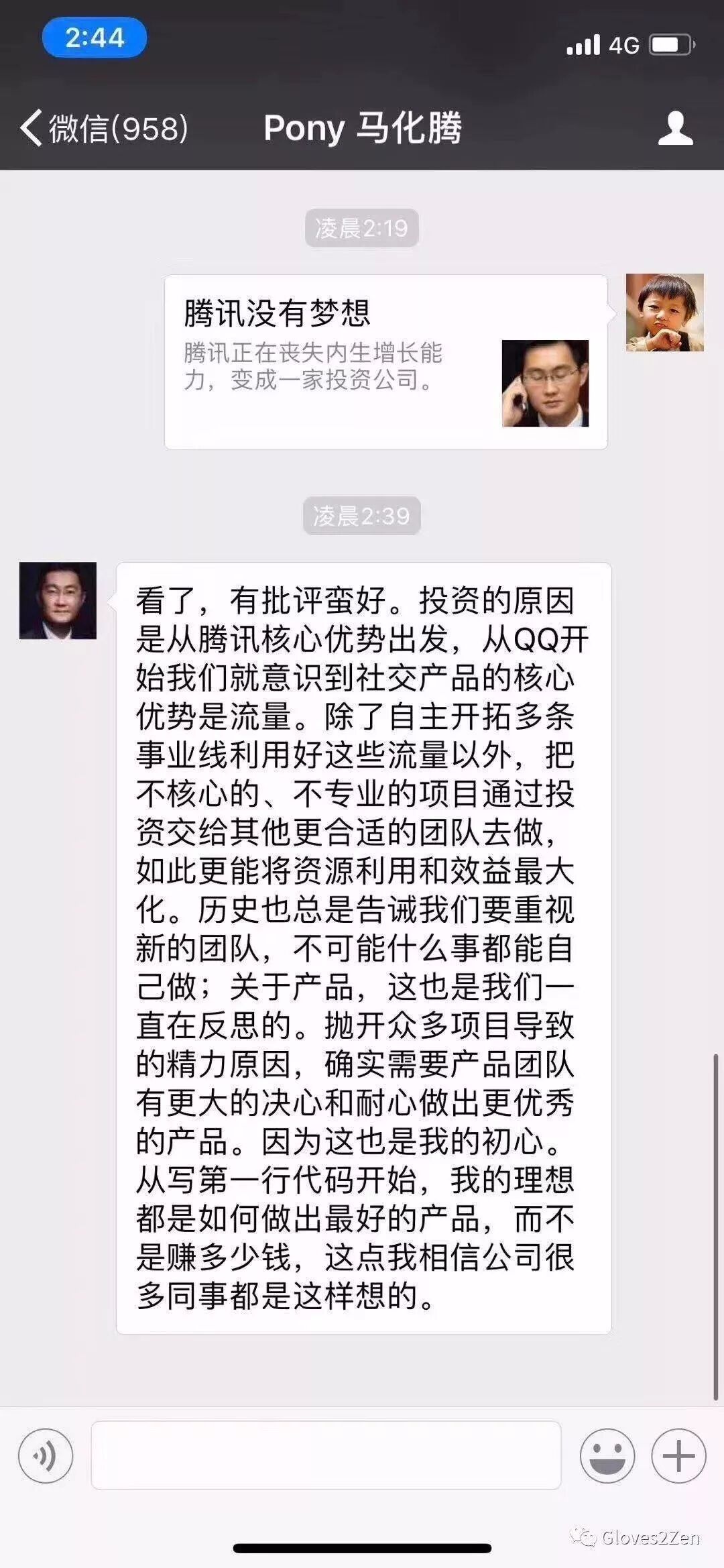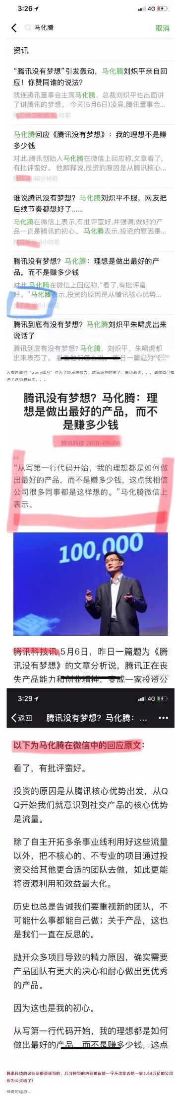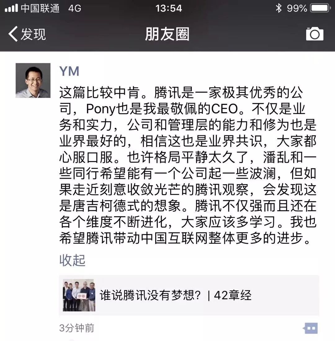因为小马哥回应《腾讯没有梦想》的截屏,原来是假的。