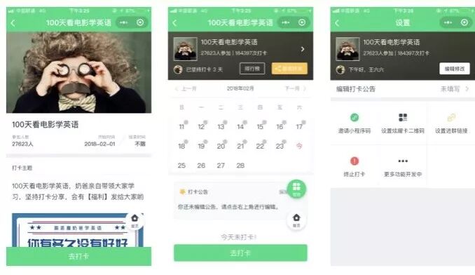 活动的形式就是采用:微信群裂变+打卡小程序