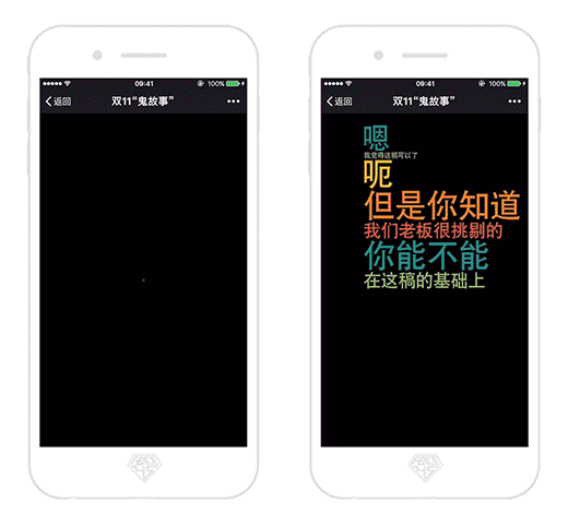不同于网易的“戏精”流派,阿里的“戏精”H5——《双11前,秋裤厂经理深夜给女设计师打电话》,则完全抛弃了内心戏。