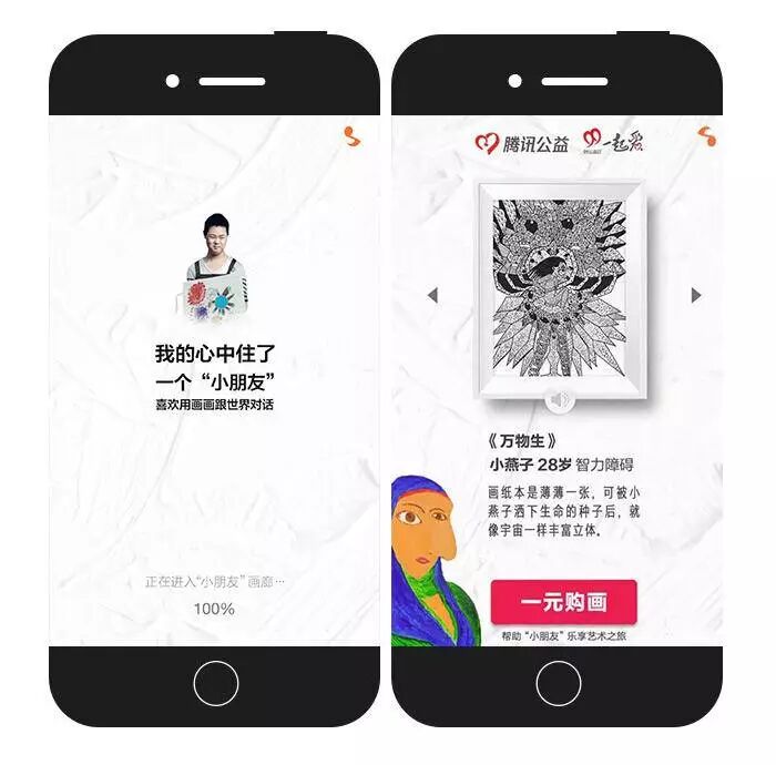8月份,腾讯公益推出《小朋友画廊》,1元前购买自闭症儿童的画作,就相当于为关爱自闭症儿童的社会项目进行了捐款。