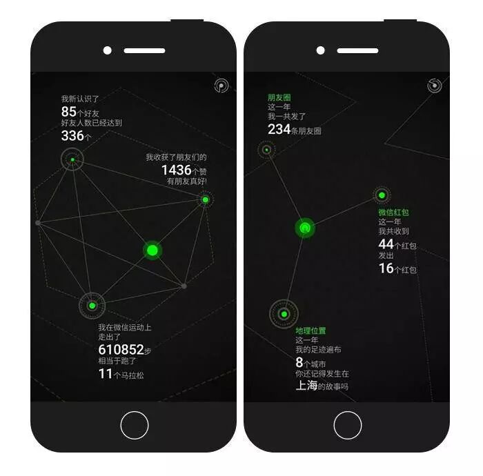 除去首页引导点击屏幕外,仅仅三页的H5,展示了用户与微信的点点滴滴:你是什么时候第几个注册微信的,第一条朋友圈是什么时候发的,第一个好友是谁,在2015年新加了多少好友,收获了多少个赞等等。