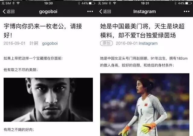 比如与新世相合作,选择模拟文章标题为《你应该找到自己的气场》;与gogoboi合作的文章标题为《宇博向你扔来一枚老公,请接好!》。
