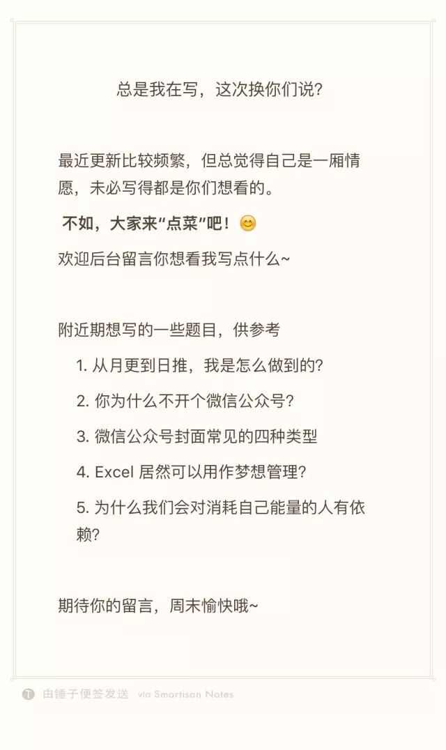 如果有的粉丝留言特别精彩,则会考虑直接用来做标题。