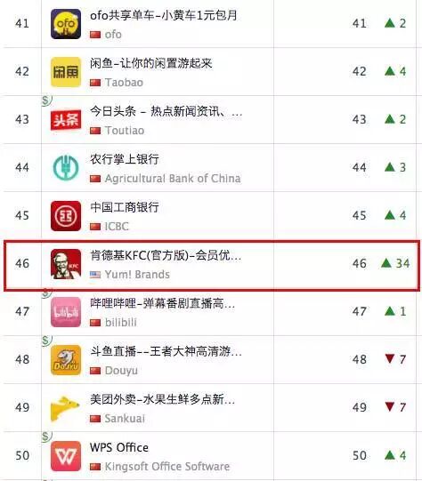 这样一个惠民的bug一经发现,自然是一传十、十传百,很多用户知悉这个薅羊毛的机会都纷纷跑去下载app。硬生生把这样一个美食类App刷到了排行榜前50名。其实像肯德基这样的平台也经常做各种类似的半价活动,但是远远没有这种让用户觉得自己很聪明赚到了来的有效,要知道17年下半年的时候,用户对于下载app的意愿度其实很低了,如果是投放渠道做下载注册的话,成本是非常高昂的。