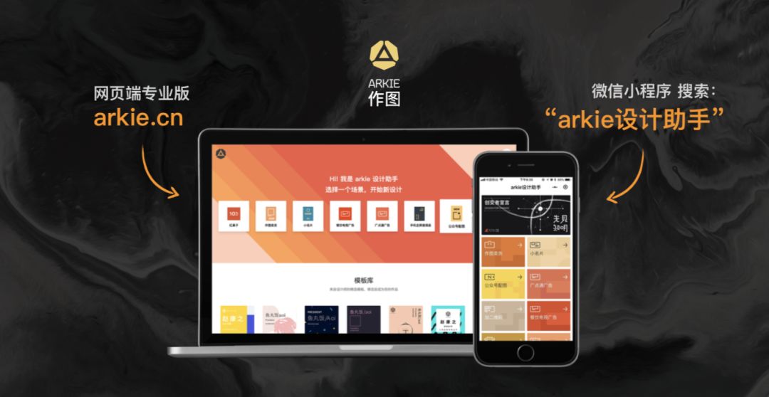 2017年4月,ARKIE网页端公测版上线。ARKIE作图是一款智能设计助手,用户无需掌握任何设计基础,只需输入文字需求,ARKIE就能自动分析语意,几秒内设计出多个合适的海报。简言之,它满足“简单一句话,为你生成海报”的诉求。