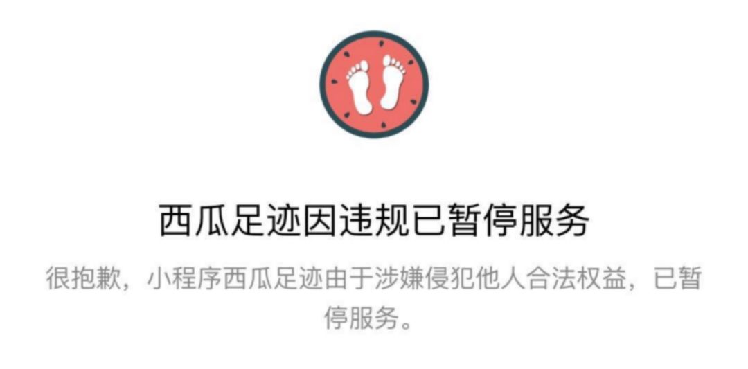 以“涉嫌侵犯他人合法权益”为由被封的爆款小程序,“西瓜足迹”并不是第一个。