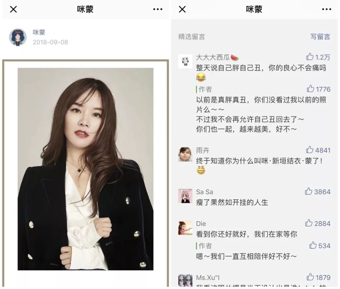 9月8日,咪蒙在公众号推送了一张“改头换面”的精修照,令人瞠目结舌,眼前一亮,连她的死忠粉们都高呼震惊。