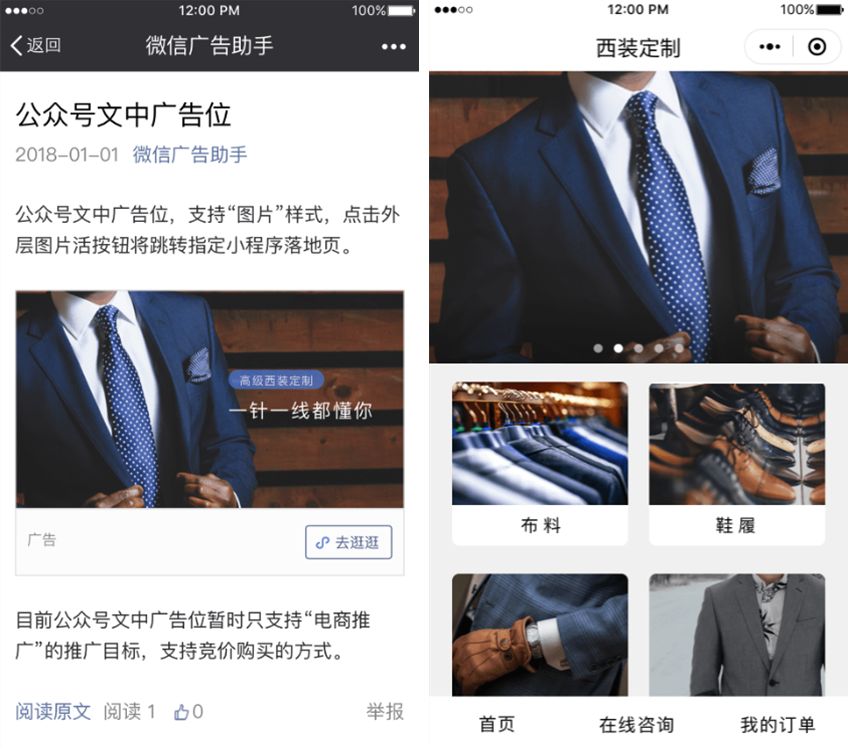 文中广告出现在公众号文章正文中。如果与公众号文章上下文具有相关性,可以提高广告转化效率。支持图片样式,点击外层图片活按钮将跳转置顶小程序落地页。