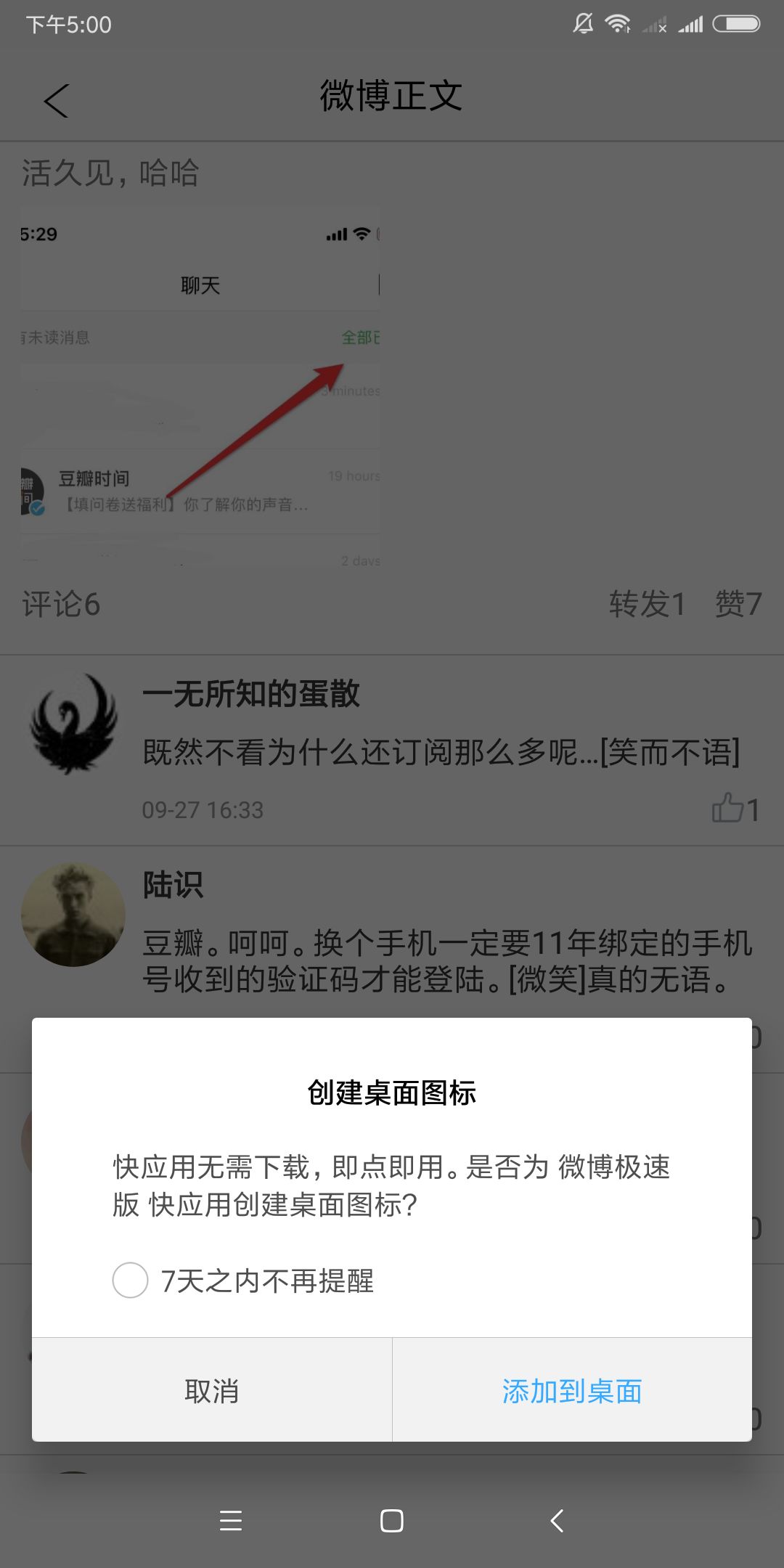 3.添加到桌面后访问微博PWA版本(最右),登录、评论、转发与私信功能与微博App均正常。