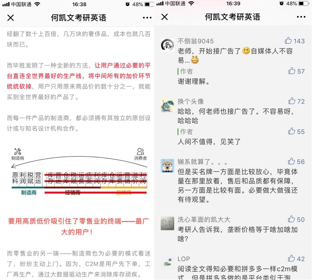 还有一个成功的原因是内容本身,因为我的内容里真的有过考研英语的原题,碎片化的模式也很符合考研学生的学习习惯。