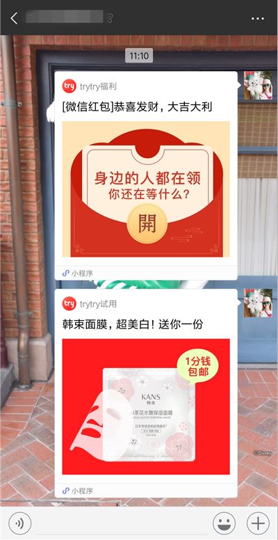 在活动过程中,我们发现,用户可以反复领红包,每次的领红包结果也不一样。除了现金红包,还有导流到京东小程序领取优惠券、导流到小程序“寺库商城”试用商品、提醒用户下载trytry App领更多福利等。