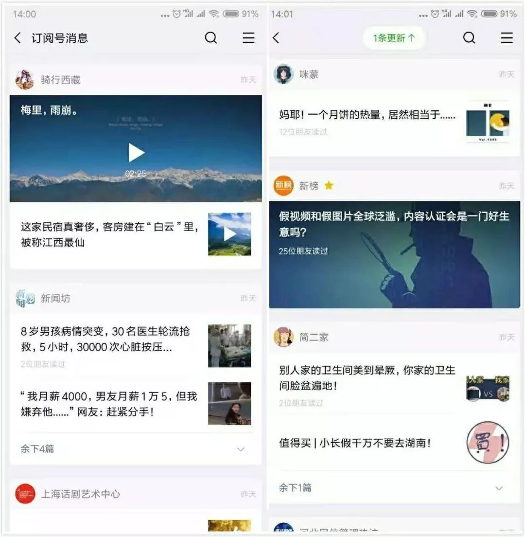 第一,视频的娱乐需求更大,可这种“生理性”的消费,并不适合微信订阅机制。很多人订阅公众号并非出于“想看”,仅仅是“需要看”。这种知识性的内容,最合适的消费场景就是一篇篇从公众号打开文章吸收,而不是随时打开从上往下“无脑刷”。