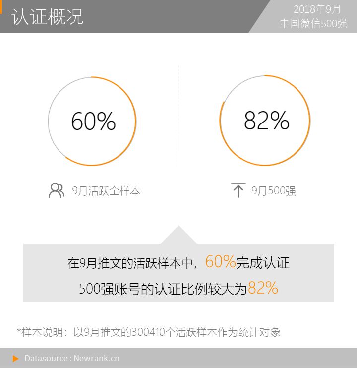 全样本账号的认证比例为60%,9月500强的认证比例为82%,500强的认证比例远高于全样本,说明头部账号更多的以企业运营。