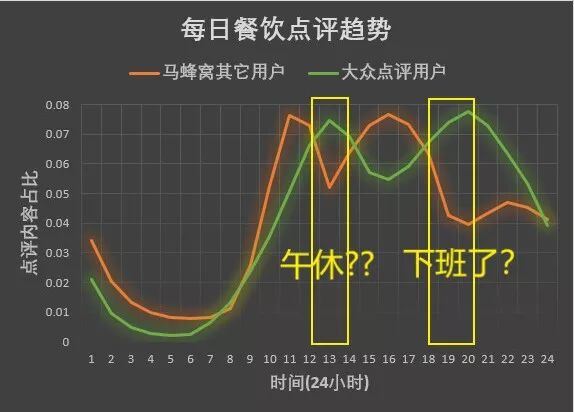 除了7000多个实锤抄袭账号,他们还整理出1.5万个活跃账号,集中在2015年中旬至2016年初发布点评。他们还发现马蜂窝大部分用户,集中在上班时间写点评。一到饭点和周末,点评数据断崖式下跌。