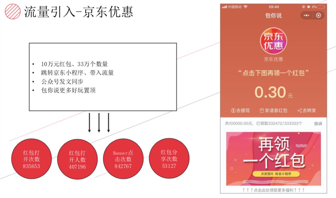 简单来说,「包你说」企业版红包分为线上线下两种。比如和京东优惠进行合作,为后者引入流量。