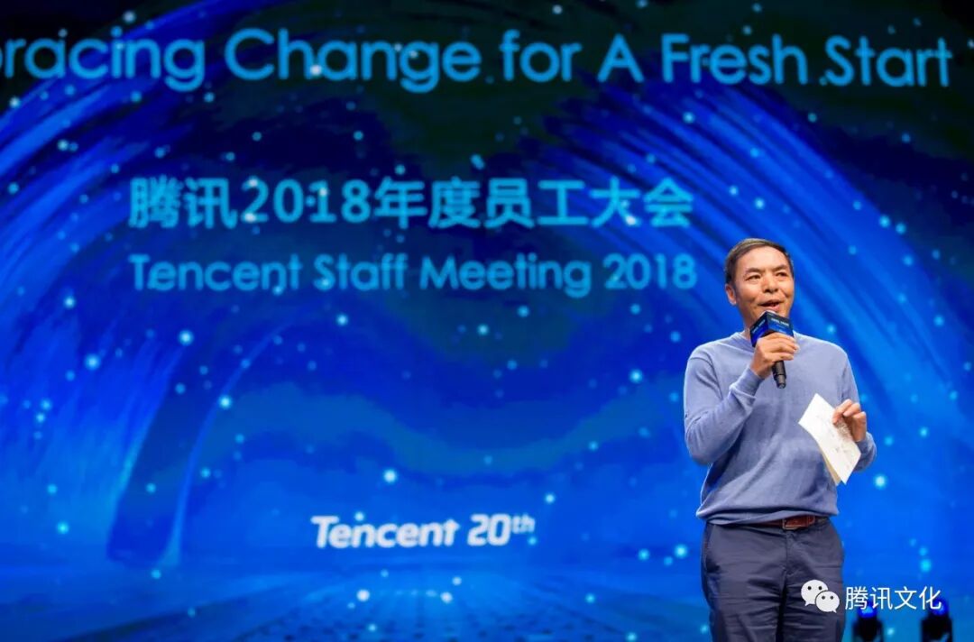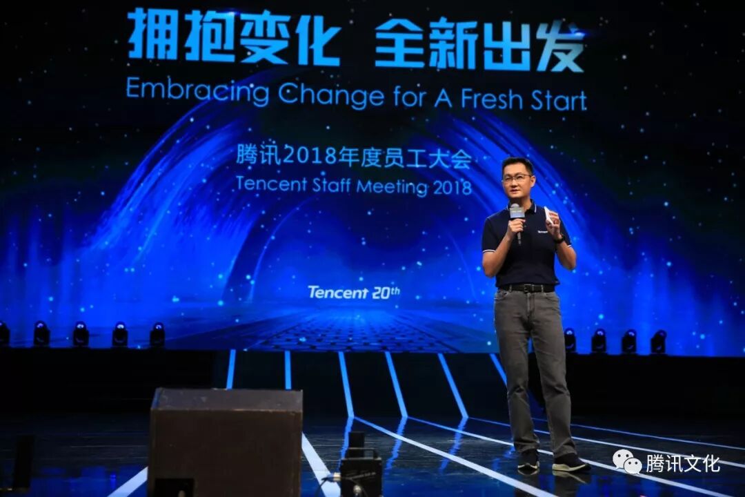 新榜讯 今日(12月12日),腾讯召开2018年度员工大会,公众号「腾讯文化」推文《腾讯2018员工大会,拥抱变化,全新出发!》,文章表示,会上腾讯总办的男神们Pony、Martin、Mark和Allen发表精彩发言。