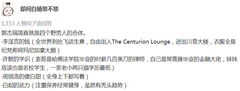 一方面,郭杰瑞视频中的头等舱、星级酒店信息,勾起了网友极大的好奇心。有人调侃:这不就是「四个野男人」的合体吗?