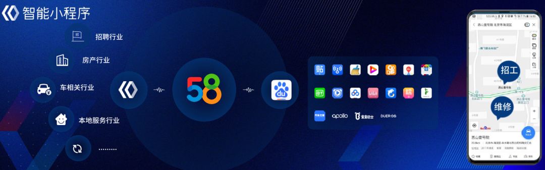 未来,作为平台方,58计划为站内数百万商户开通百度小程序,利用开源联盟生态,为商家店铺小程序实现多场景分发。