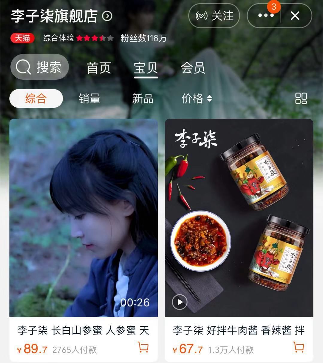 李子柒的百度搜索指数少有波动,一周一次更新的时候会出现起伏。成名三年,唯一一次接受采访是和「新榜」榜哥的对谈,之后继续保持着低调,如何变现成了一个谜,直到8月底官宣同名电商品牌「李子柒」。据「短视频工场」统计,「李子柒」天猫店上线6天,流水破千万。