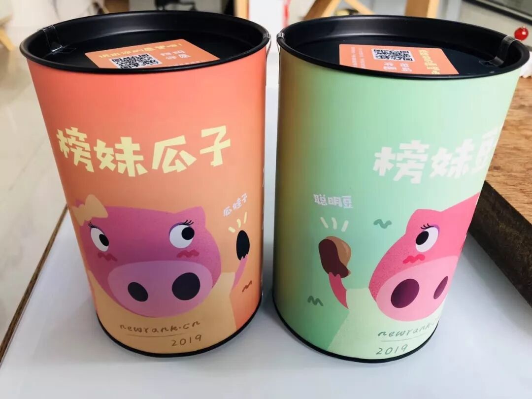 是的,如上锦鲤活动所示,“榜妹瓜子”带着它的新品“榜妹豆子”又回来啦!为了应和即将到来的猪年,设计师特意把榜妹画成了猪……但好在很多朋友都在夸升级版的“榜妹瓜子”包装软萌可爱。