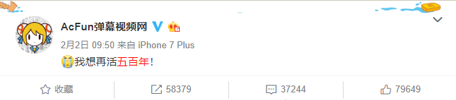 第二天A站发微博:我想再活五百年。真情实感的老粉丝在微博下留言:等你归期。