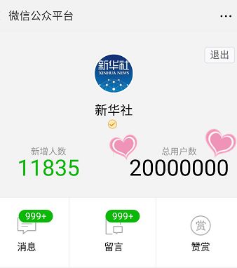新榜讯 12月30日,微信公众号「新华社」发文宣布,其微信公众号总用户数已达2000万。 更多资讯,敬请关注公众号“新榜”(ID:newrankcn) 内容使用新榜编辑器发布。新榜编辑器,多平台一键分发、海量在线图片搜索、大数据帮你了解“什么值得写”、丰富的样式中心,是能让你早点下班的编辑器。 微信好看 vlog的发展 抖音双12 合议洗稿 短视频红人 2019新媒体 农村会姐 网红郭杰瑞 于小戈 大佬书单 五环趣头条 10w+点赞 最新月报 新媒体入门 新榜大会