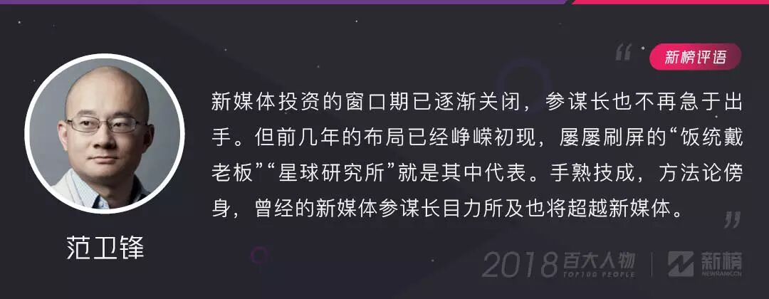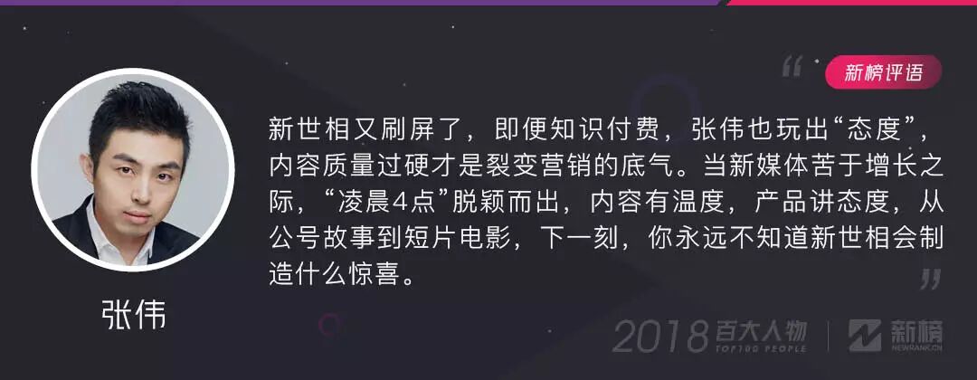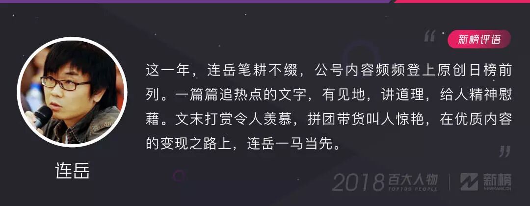 延续传统,在今年的最后一天,新榜作为内容创业服务平台奉上这份“新媒体百大人物”,向推动这个行业向前的探索者致敬。