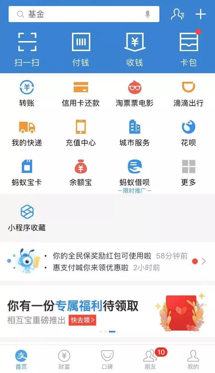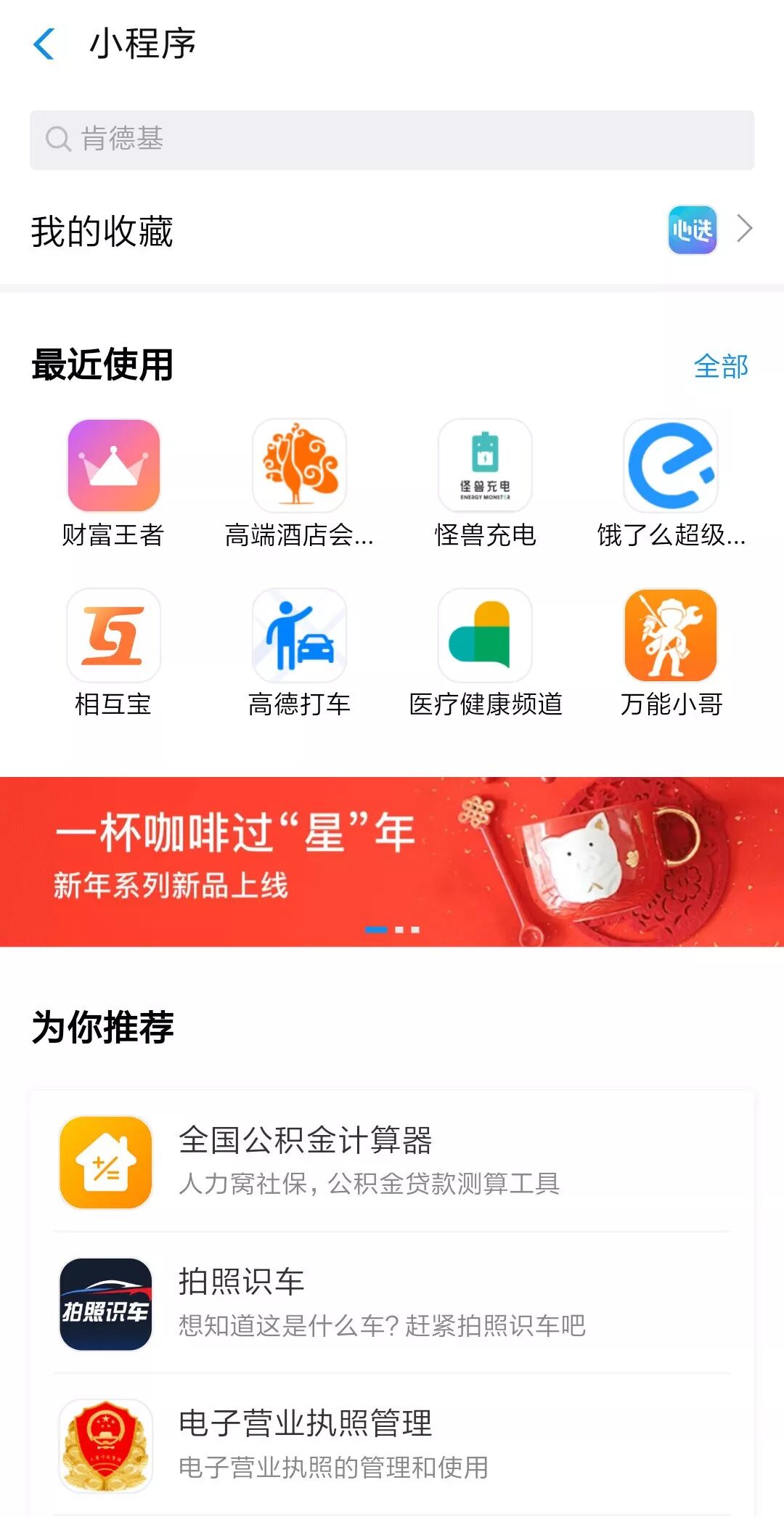 支付宝今日更新,首页竟又多了一个小程序入口:在首页九宫格下方,下拉就是小程序收藏的入口。