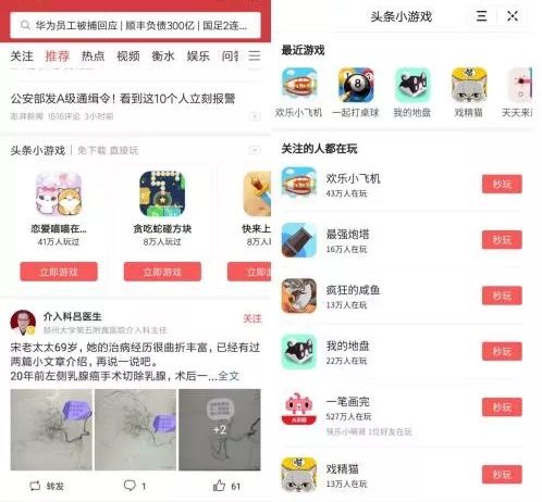 新榜讯 近些天,今日头条信息流中稳定出现“小游戏推荐栏”,通过今日头条小游戏中心可查看到已上线的24款小游戏。有网友反映,此入口已出现一段时间,不过有段时间“时有时无”。
