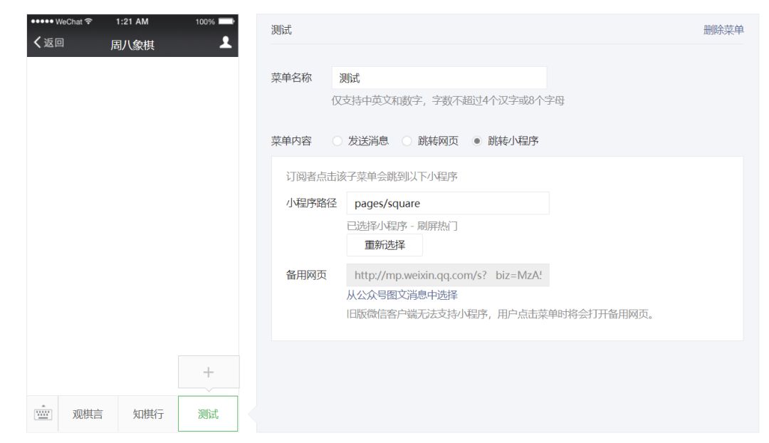 这11篇小程序文章的链接目前都可以打开,而量子程序公众号和这11个小程序并没有实现绑定。除此之外,公众号菜单在未得对方管理员关联许可的情况下,也可以添加任意一个小程序,但从测试来看,还只能链接到小程序主页位置。