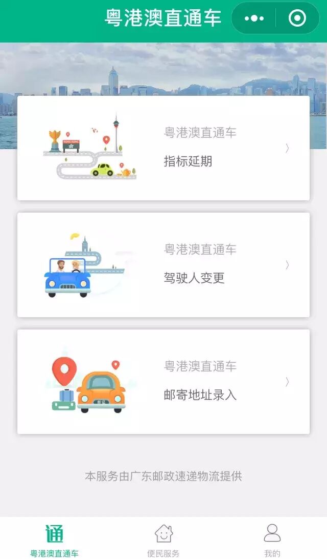 用户可在「粤港澳直通车」小程序中办理港澳直通车变更、牌证补换(补、领机动车号牌、行驶证业务)、指标停驶等业务。
