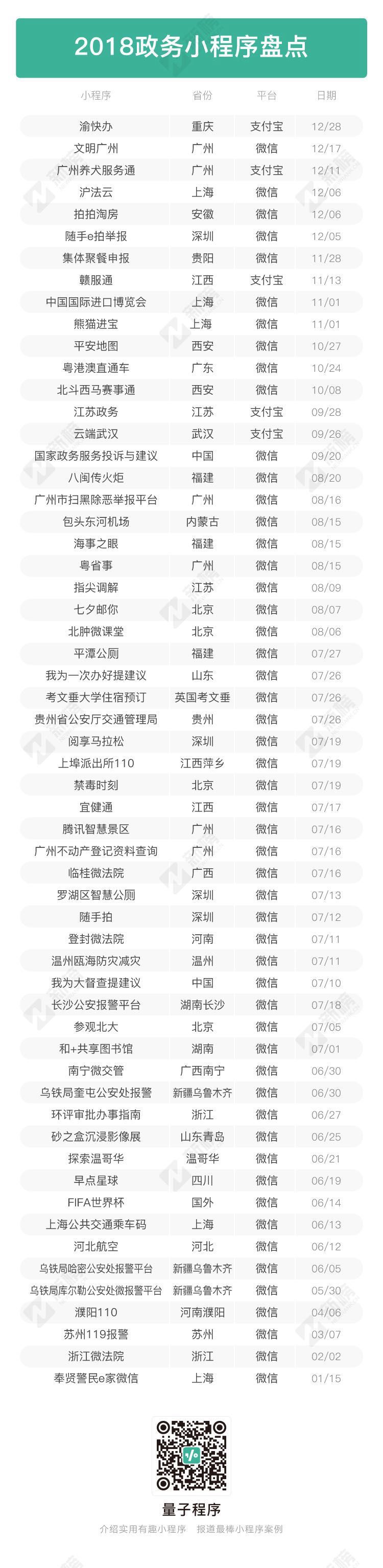量子程序梳理了过去一年引发关注的政务小程序代表案例,希望从时间、地域、平台多维度还原政务小程序的发展的真实情况,探讨小程序对社会生活的切实改进。