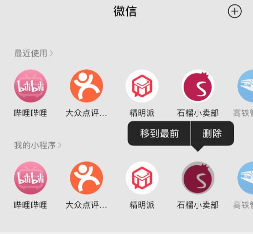 那时的“我的小程序”按用户设置时间排序,不受使用时间影响,越早设置的排在越后面,且每次下拉只显示4个,用户只能通过滑动寻找需要的小程序。